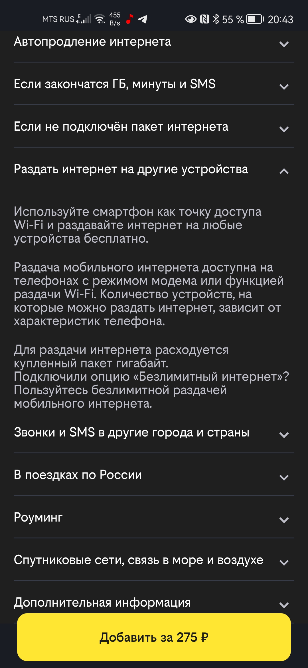 Пока 295р. Надо будет тёще ещё минут прикупить