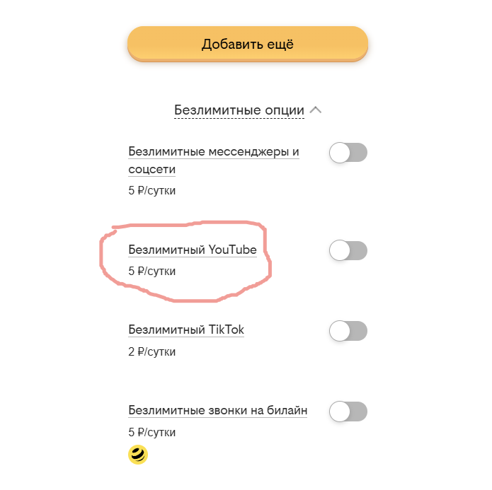 На тарифе Z я за 5 рублей в сутки подключаю безлимит на билайн, после чего говорю, сколько влезет. После разговора безлимит отключаю. То есть звонок мне стоит 5 рублей.